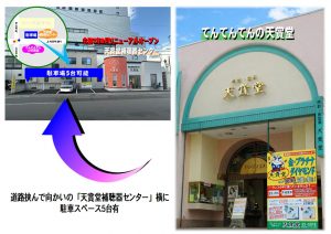 ■駐車場:天賞堂補聴器センター横に5台専用駐車場、上土手町駐車場もご利用ください。
