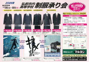 イトーヨーカドー弘前店子供服売場で発行の「3年間お直し無料券」をお持ちの方は、学生ショップマルヨシにてお直しの承りをしております。